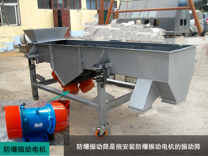 篩分的物料是易燃易爆的氣體或固體物質(zhì),例如:酒精、汽油、石油、煤礦、鋁銀漿等物料,此時只要根據(jù)篩分物料的特性來判斷是否取用防爆電機就行。
