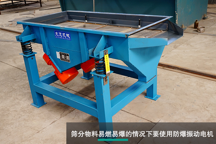 防爆振動篩是指安裝防爆振動電機的振動篩,現(xiàn)在越來越多的用戶在安全意識上有了很大的提高,在選購振動篩設(shè)備時選用防爆振動篩。今天大漢小編就為您講解一下哪些物料適用安裝防爆電機呢?