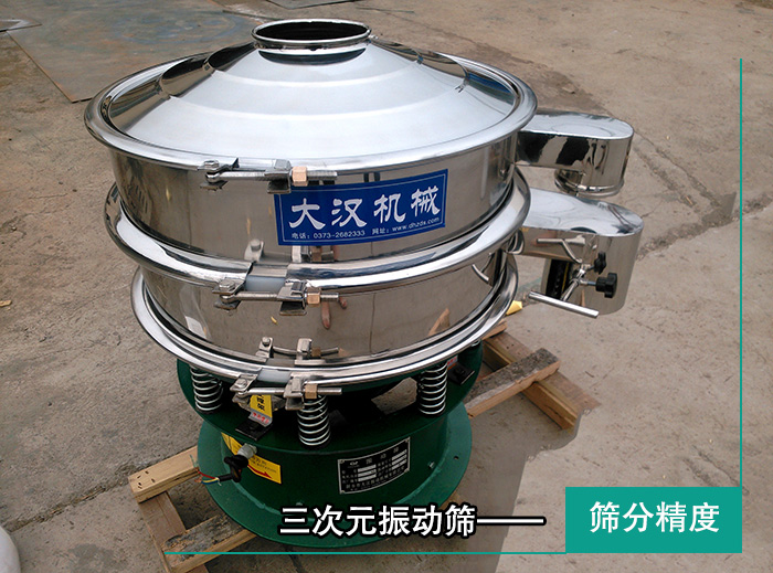 120目以內(nèi)的石英砂屬于小顆粒狀,但是大于120目的就呈粉末狀,稱作石英粉,所以對(duì)于大于120目的石英粉來講,選擇三次元振動(dòng)篩無疑是可靠的選擇。因?yàn)槿卧駝?dòng)篩作為一種高精度細(xì)粉篩分設(shè)備,是進(jìn)行粉末篩分作業(yè)中可靠設(shè)備之一,它可以篩分500目或0.028mm粉塵及顆粒狀物料,由此可見在篩分粉末狀的石英砂時(shí)的高效性。