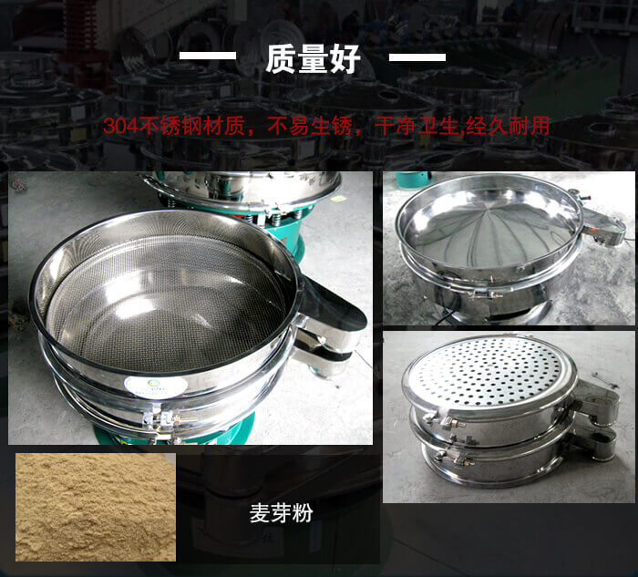 麥芽粉振動篩采用的是優(yōu)質304不銹鋼材質,不易生銹,干凈衛(wèi)生,而且不會被物料所氧化,經(jīng)久耐用;每件產(chǎn)品經(jīng)過多道程序的檢驗和考核的,保證質量達標還經(jīng)過了ISO9001的認證