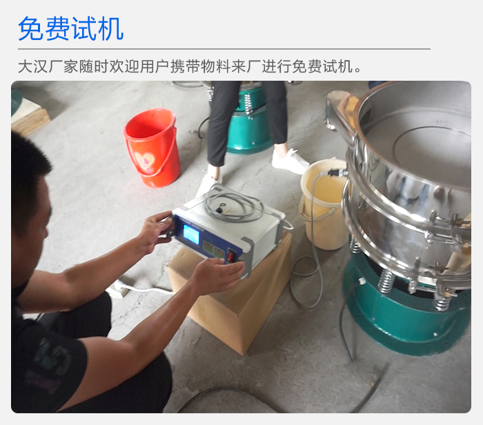 如果您想了解超聲波振動篩的工作狀況,大漢廠家隨時歡迎用戶攜帶物料來廠進行免費試機。